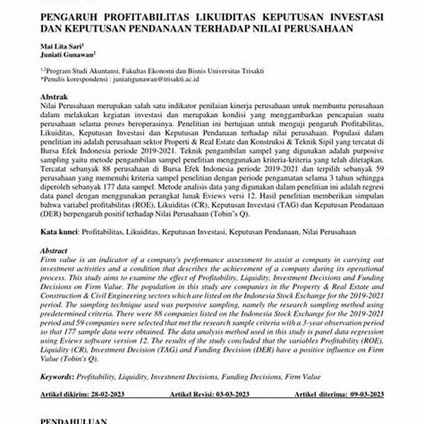 Likuiditas Dan Profitabilitas Investasi